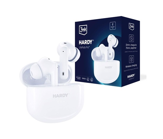 3mk bezdrátová stereo sluchátka HARDY LifePods Pro, stereo, nabíjecí pouzdro, bílá