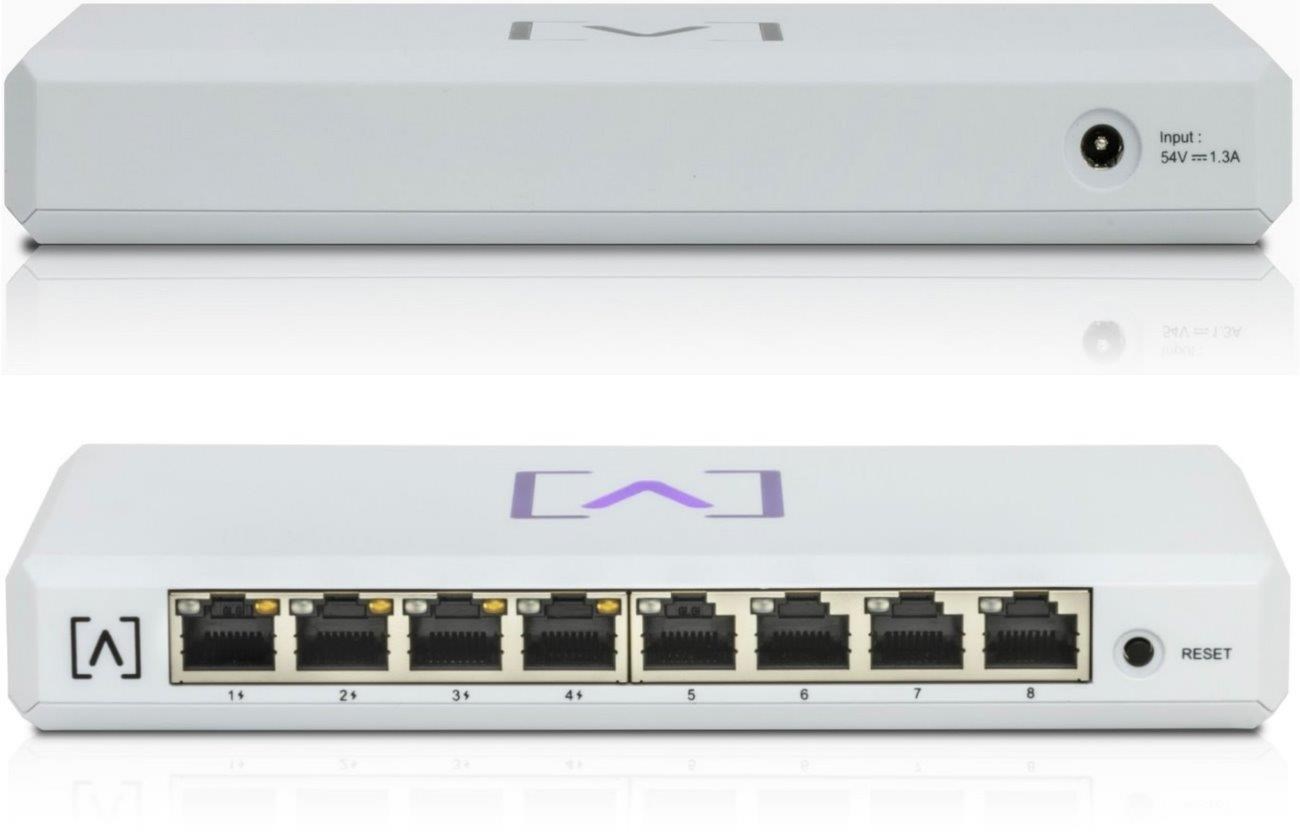 S8-POE od společnosti Alta Labs je cloudově managovatelný, menší desktopový switch do méně exponovaných míst s plastovým šasi a 8x 10/100/1000 ethernetovými porty, z čehož 4 porty podporují 802.3af/at PoE+ standardy (30 W / port) s celkovým PoE budgetem 60 W.