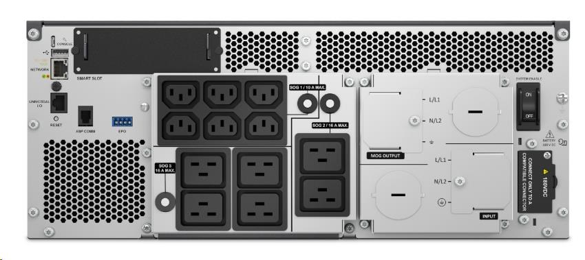 Počet zásuviek:8; Účel použitia:Server, Data Center; Prevedenie:Tower/Rack covertible; VA:10000; Výška v racku:4U; Topológia:On-Line; Fáza (Vstup/Výstup):1:1; Komunikácia:USB, DB-9 - RS-232; Možnosti rozšírenia:Management karta, Predĺženie záložného času, EPO vypínač