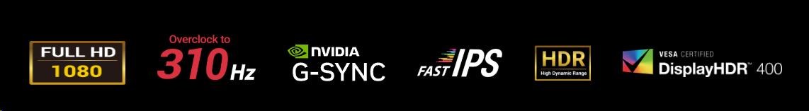 Technológia panelov ASUS Fast IPS umožňuje zapínanie a vypínanie prvkov displeja z tekutých kryštálov až štyrikrát rýchlejšie ako bežné IPS panely, čo dáva ROG Strix XG259CMS dobu odozvy 1 ms GTG a prakticky žiadne rozmazanie alebo rozmazanie pohybu.