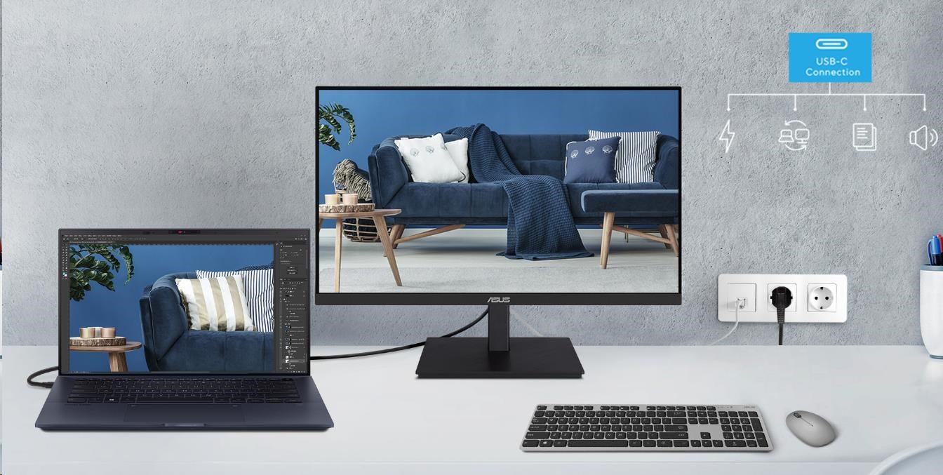Spolu s portom USB-C ponúka ASUS VA27ECPSN HDMI, DisplayPort, tri výstupné porty USB-A a RJ45, takže je kompatibilný so širokou škálou zariadení. VA27ECPSN dokonca obsahuje ethernetový port RJ45, ktorý poskytuje pripojeným zariadeniam stabilné internetové pripojenie pre väčšiu úsporu miesta a pohodlie. Má tiež priechodný port pre vstup pre slúchadlá.