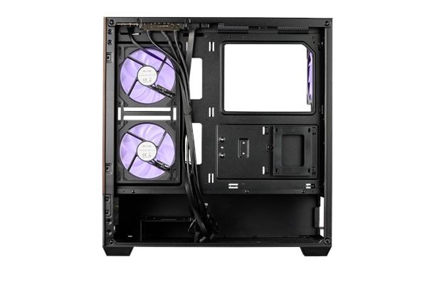 Prevedenie skrine:Midi Tower; Farba skrine:Čierna; Počet pozícií 3.5" (HDD):1; Počet interných pozícií 2.5":1; Vybavenie PC skrinky:Predný Audio panel, Predný USB panel, Priehľadná bočnice