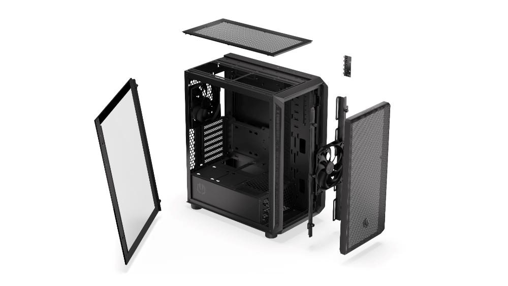 Vzdušná počítačová skriňa Arx 500 Core je kompatibilná so základnými doskami ATX, microATX a mini-ITX. Pojme tie najúčinnejšie komponenty, vrátane radiátorov s priemerom až 360 mm a až 7 ventilátorov - vrátane dvoch prednastavených tichých ventilátorov Stratus 140 PWM, ktoré zabezpečujú účinné chladenie. Jemne perforované predné a horné panely fungujú ako filtre, zlepšujú prúdenie vzduchu a zároveň chránia interiér pred prachom.