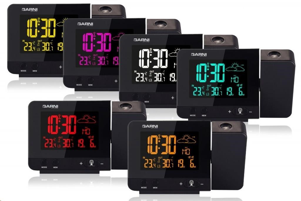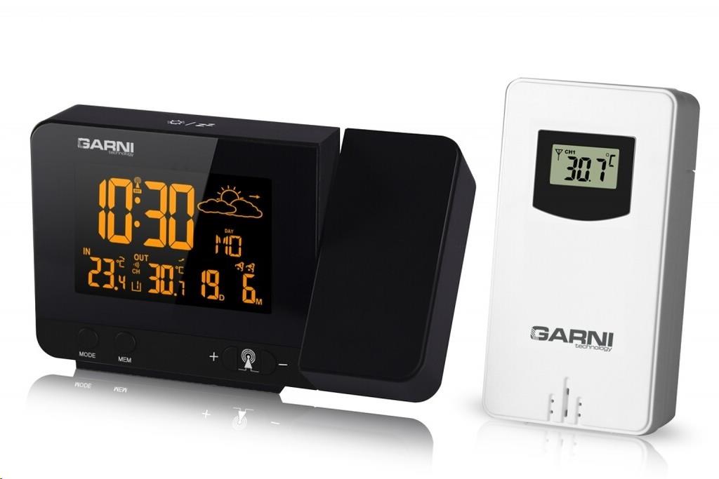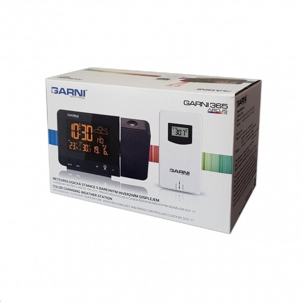 Meteorologická stanica so špičkovým inverzným farebným VA displejom s časovo riadeným rádiovým signálom DCF-77, budíkom, meraním vonkajšej a vnútornej teploty, bezdrôtovým čidlom na meranie vnútornej a vonkajšej teploty a projekciou času a vnútornej / vonkajšej teploty inverzný farebný VA displej o rozmeroch 63 x 42 mm s možnosťou trvalého osvetlenia pri napájaní sieťovým adaptér, alebo krátkodobého osvetlenia na 15 s pri napájaní batériami 3 stupne jasu osvetlenia displeja, možnosť vypnutia osvetlenia displeja s možnosťou krátkodobého osvetlenia na 15 s (pri napájaní sieťovým adaptér) lze nastaviť až 70 farieb displeja, alebo režim automatického plynulého striedania farieb možnosť rýchlej voľby 8 farieb osvetlenia displeja veľkosť číslic na displeji – čas 22 mm, dátum, vnútorná a vonkajšia teplota 10 mm, skratka názvu dňa 7 mm čas a dátum riadené signálom DCF-77 s možnosťou manuálneho nastavenia ikona príjmu signálu DCF-77 skratka názvu dňa 12-hodinový alebo 24-hodinový formát zobrazenia času možnosť nastavenia časového pásma od -1 do +2 hodín budík s 2 budícími časmi s funkciou opakovaného buzenia (Snooze) po 5 minútach budící signál – 20 sekúnd 1 pípnutie za sekundu, 20 sekúnd 2 pípnutia za sekundu, 20 sekúnd 4 pípnutia za sekundu a potom stály pípnutie striedavá projekcia času a vnútornej a vonkajšej teploty (teploty sa striedajú každých 5 s) s možnosťou otočenia obrazu o 180°, možnosť sklopenia tubusu projektora o 90° dopredu a dozadu farba projekcie červená stálu projekciu pri napájaní sieťovým adaptérom s možnosťou vypnutia 6 animovaných ikon predpovede počasia (slnečno, polojasno, oblačno, zrážky, silný dážď a sneženie) na základe sledovania barometrického tlaku vestaveným barometrickým čidlom možnosť nastavenia výchozej ikony predpovede počasia zobrazenie hodnôt vnútornej a vonkajšej teploty pamäť na maximálne a minimálne namerané hodnoty teploty s automatickým mazáním o 0:00 šípky tendencie vývoja barometrického tlaku, vnútornej a vonkajšej teploty indikácia námrazy vonkajšej teploty v rozsahu od -1°C do +3°C ikonou na displeji zobrazenie teploty v °C alebo °F možnosť použitia až 3 bezdrôtových čidiel GARNI 029 (jedno čidlo GARNI 029 je súčasťou dodávky) bezdrôtový prenos hodnôt vonkajšej teploty na frekvencii 433 MHz ikona príjmu signálu bezdrôtového čidla USB port na nabíjanie mobilných zariadení (len pri napájaní hlavnej jednotky sieťovým adaptérom), maximálny nabíjací prúd 1000 mA ikony slabých batérií napájanie sieťovým adaptér alebo batériami možnosť umiestnenia farba čierna Bezdrôtové čidlo GARNI 029 odolné voči vlhkosti displej o rozmeroch xxxxxx mm veľkosť číslic na displeji: teplota xxxxxx mm meranie teploty 3 kanály maximálny RF výkon 10 dBm (10 mW) možnosť umiestnenia a zavešenia farba biela Obsah balenia: 1 x hlavná jednotka GARNI 365 Arcus 1 x bezdrôtové čidlo GARNI 029 1 x sieťový adaptér český, slovenský, nemecký, anglický, taliansky, poľský a maďarský návodPopis produktu bol preložený pomocou umelej inteligencie a môže obsahovať nepresnosti.