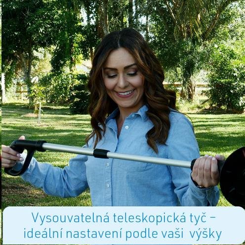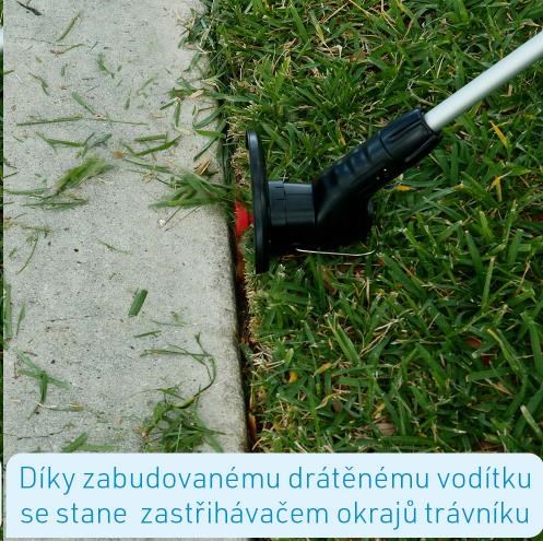 Ergonomická rukojeť se příjemně drží a usnadní vám nakládání s přístrojem. Vysouvací teleskopická tyč vám umožní přístroj přizpůsobit vaší výšce. Díky zabudovanému vodítku se z přístroje stane praktický zastřihovač rohů trávníku. Odteď můžete ve vaší zahradě zastřihovat rohy trávníku bez toho, abyste museli vytahovat další přístroje.