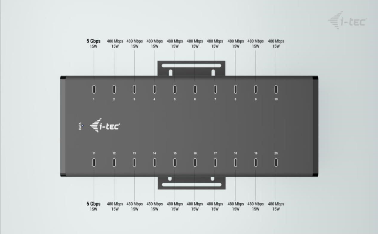 Tento moderný HUB ponúka 20 USB-C s funkciou Plug & Play a nabíjaním až 15 W na port. Vďaka tomu, že HUB má 20 USB portov, je možné nabíjať až 20 zariadení naraz.