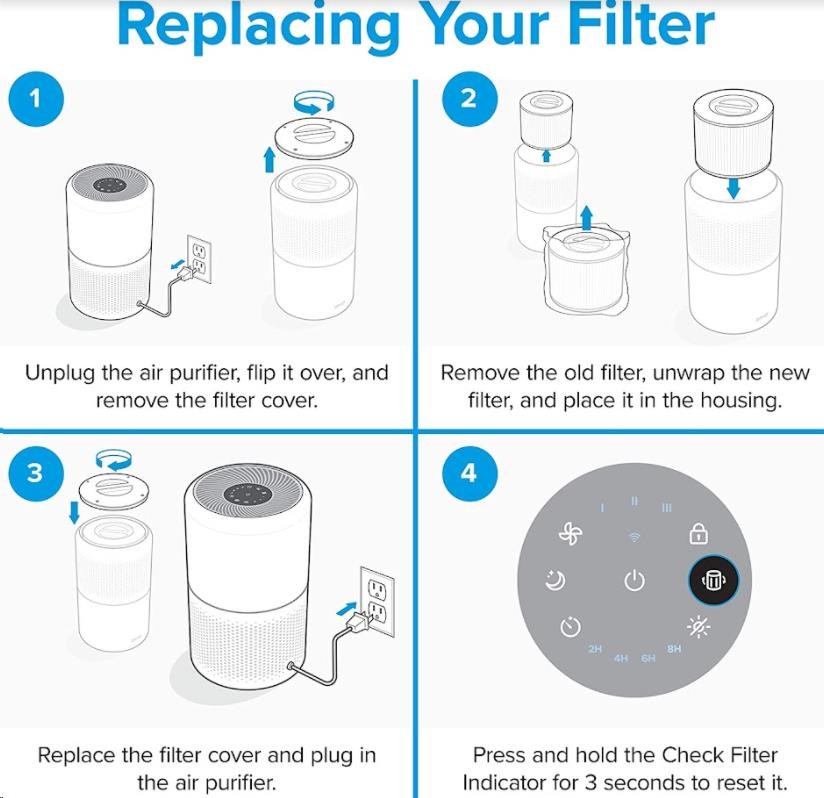 Druhou vrstvou je HEPA filter H13. To odlišuje Levoit od konkurencie, pretože filter HEPA H13 je oveľa kvalitnejší a spoľahlivejší ako bežne používané HEPA H11. Tu sa odfiltrujú jemné prachové častice, pleseň, baktérie, peľ, dymové častice, roztoče a srsť.