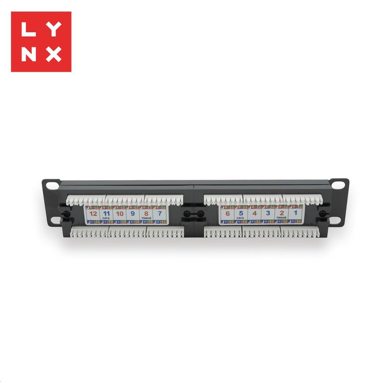 LYNX 10" patch panel 12-port, UTP Cat6, 50µ, nestíněný, černý