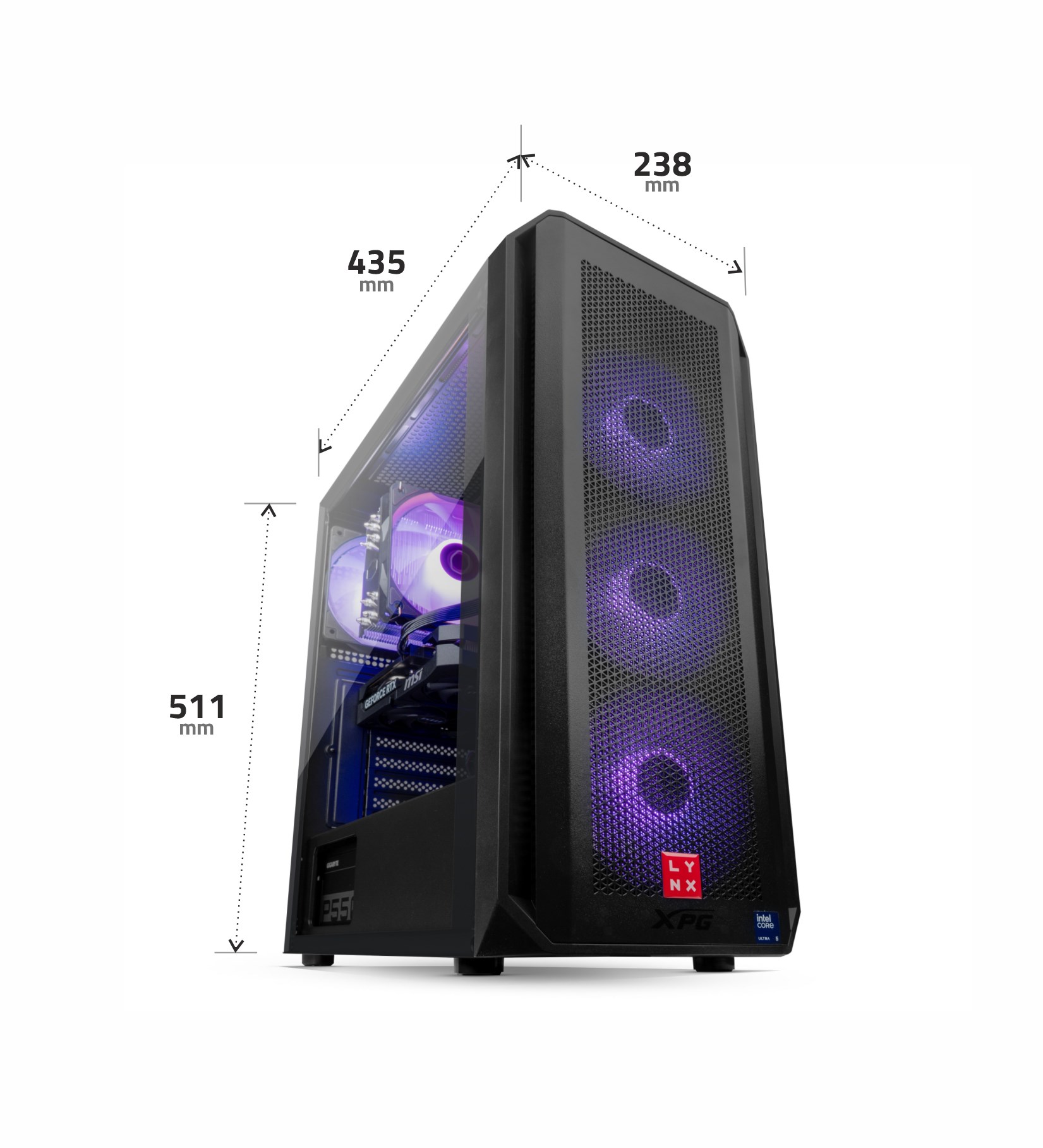 Základem sestavy je deska s čipovou sadou B760 osazená 10 jádrovým procesorem Intel i5, který disponuje technologií HyperThreading pro plynulejší multitasking, pracující na frekvenci 3.5 GHz, nebo až 4.7 GHz s technologií turbo. Paměti RAM značky Kingston jsou pro sestavy LYNX standardem, v této sestavě se jedná o paměti s kapacitou 32 GB DDR5 (2x 16GB). Plynulý obrazový výstup je zajištěný grafickou kartou NVIDIA GeForce RTX 5060, která disponuje 8GB paměti GDDR7. V této sestavě nebrzdí ani uložiště je zde SSD disk 1 TB M.2 PCIe NVMe pro veškerá potřebná data a software. Dostatečné napájení zajištuje 550W zdroj. Sestava je dodávaná včetně nového operačního systému Windows 11 Home.