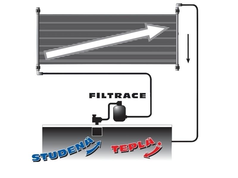 Solárny panel Slim 180 pohlcuje tepelnú energiu slnečných lúčov a odovzdáva ju vode, ktorá ním preteká. Chladná voda z bazéna je pomocou bazénovej filtračnej sústavy vháňaná do solárneho panelu, kde sa ohrieva a vracia sa späť do bazéna. Solárny panel Slim napojíte na hadice o priemere 32 aj 38 mm.Súčasťou balenia solárneho panelu Slim 180 sú aj spony a hadicové trny na napojenie na hadice.