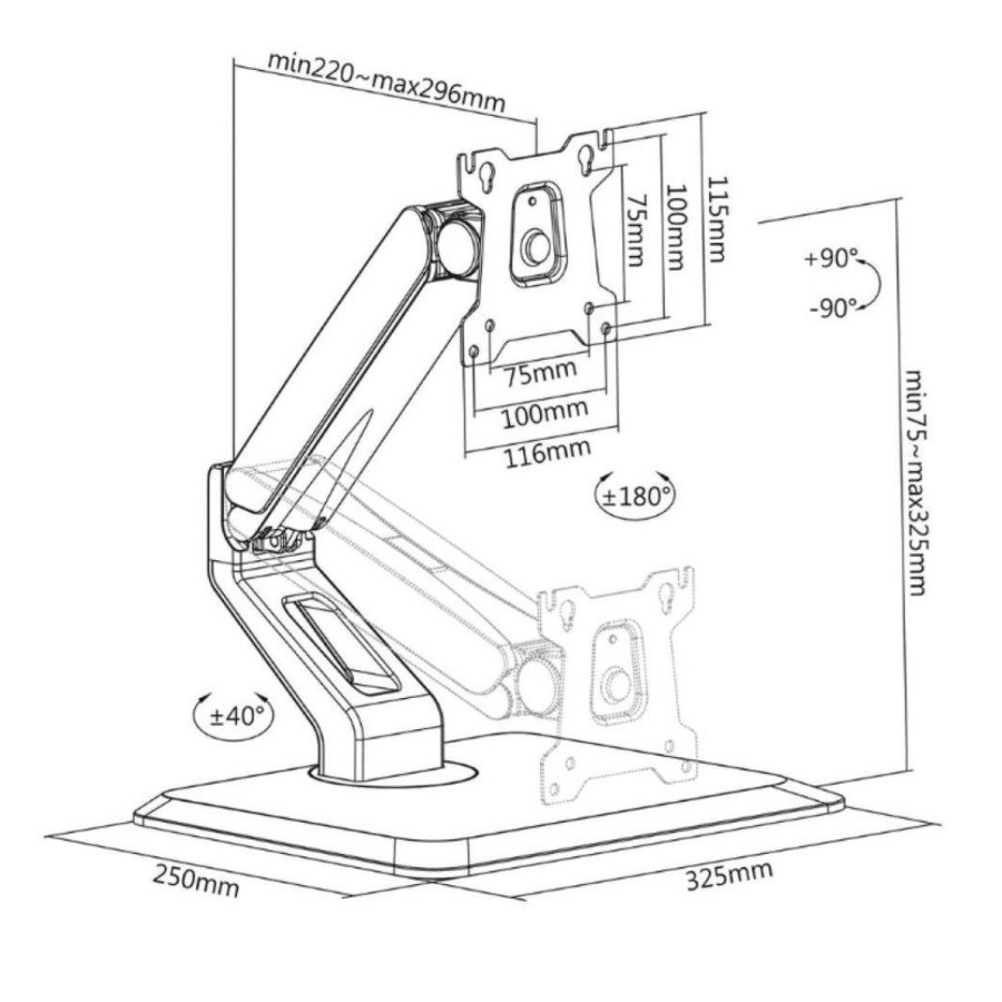 Rozbalené, kompletnéErgonomický stolový stojan na monitor Fiber Mounts FRIOS Polohovateľný stolový stojan na monitory 15-32" pre ergonomiu Vašej práce, nastaviteľná výška, otáčanie do strán, veľký rozsah naklápenia, VESA 75x75 a 100x100, nosnosť 10kg Designový stolový stojan pre skvelú ergonomiu pri práci s monitormi. Stojan je ideálny na monitory s uhlopriečkou 15-32", umožňuje nastavenie výšky 75-325mm, naklápenie v veľkom rozsahu až 90°, otáčanie na obe strany +/- 40° a podporuje aj funkciu pivot. Konštrukcia je upravená na vedenie káblov. Rozmery stabilnej podstavy 325x250mm. Podporuje VESA štandardy 75x75 a 100x100 a maximálna zaťažiteľnosť je 10kg. Rukoväť obsahuje plynovú pružinu na nastavenie podľa hmotnosti monitora, preto je výškové polohovanie extrémne jednoduché a rýchle. Stojan je možné použiť aj na menšie televízory s uhlopriečkou do 32". Držiak je vhodný aj na používanie dotykových monitorov. Stolový ergonomický stojan na monitory 15-32" ľahko polohovateľný Fiber Mounts FRIOS Technické údaje: nosnosť 10kg podpora VESA štandardov 75x75 a 100x100 vhodný na monitory a menšie televízory 15-32" vynikajúca ergonómia výškové polohovanie 75-325mm otáčanie do strán +/- 40° naklápenie +/- 90° pivot +/- 180° rozmery podstavy: šírka 325mm, hĺbka 250mm plynová pružina pre jednoduché a rýchle nastavenie výšky veľmi pekný dizajn vynikajúca kvalita, skvelá stabilita, jednoduchá inštalácia systém pre vedenie káblov farebné prevedenie čierne záručná doba 3 roky Ergonomický stojan na monitory Fiber Mounts M8C95Podstavec - stojan na monitor, ergonomický, ľahko polohovateľný Fiber Mounts M8C95 Monitorový stojan podporuje VESA štandardy: VESA 75x75 VESA 100x100 Inovatívny držiak monitoru so stojanom je navrhnutý pre jednoduché používanie klasických, zahnutých alebo dotykových monitorov. Vďaka tomuto držiaku si vytvoríte ergonomický pracovný priestor doma aj v kancelárii. Držiak monitoru je vhodný pre monitory alebo televízory s uhlopriečkou od 15" do 32" so štandardom VESA s rozmermi 75x75 alebo 100x100 a hmotnosťou do 10 kg. Vďaka širokým možnostiam nastavenia môžete monitor nastaviť do ideálneho uhla.Popis produktu bol preložený pomocou umelej inteligencie a môže obsahovať nepresnosti.