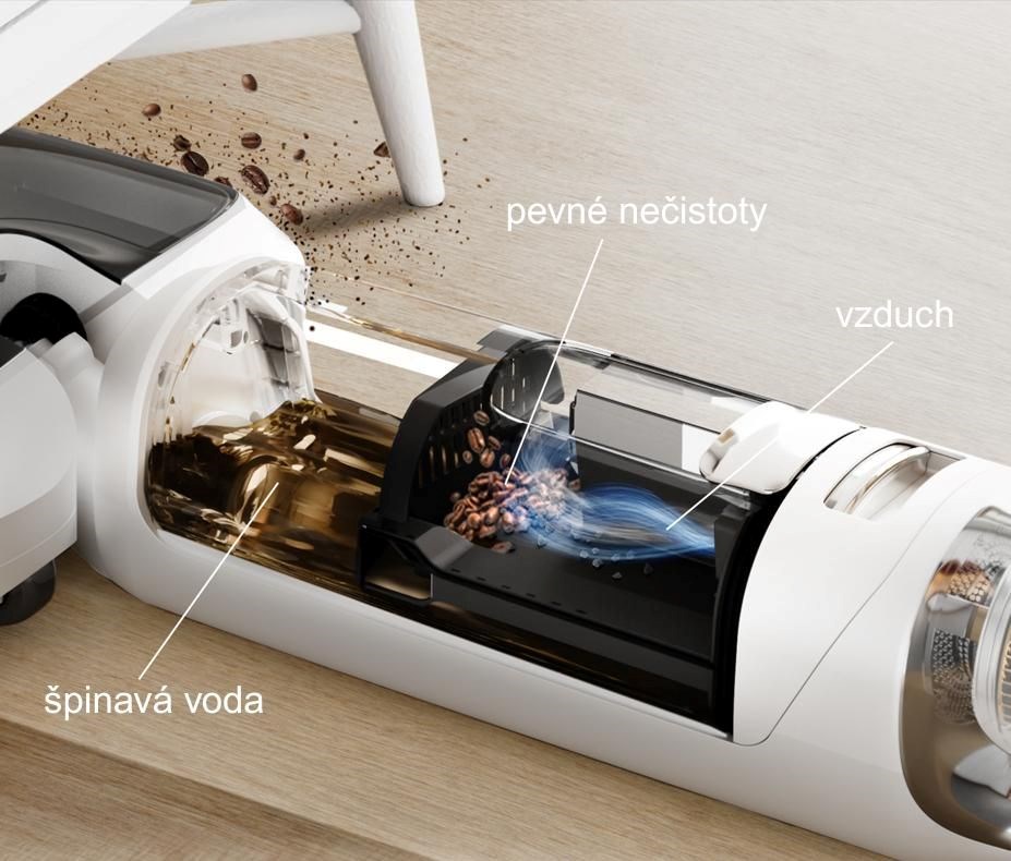 • Špinavá voda (0,7 l) je ukladaná oddelene do nádrže umiestnenej nad kefovou hlavou pre maximálnu hygienu