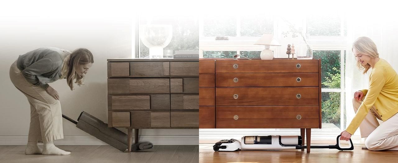 S výškou len 13 cm v sklopenom režime sa Tineco FLOOR ONE S5 STRETCH Extreme ľahko dostane aj pod nízky nábytok, kde bežné prístroje nestačia. Ľahká konštrukcia a maximálna ovládateľnosť umožňujú jednoduchý pohyb bez nutnosti sťahovania.