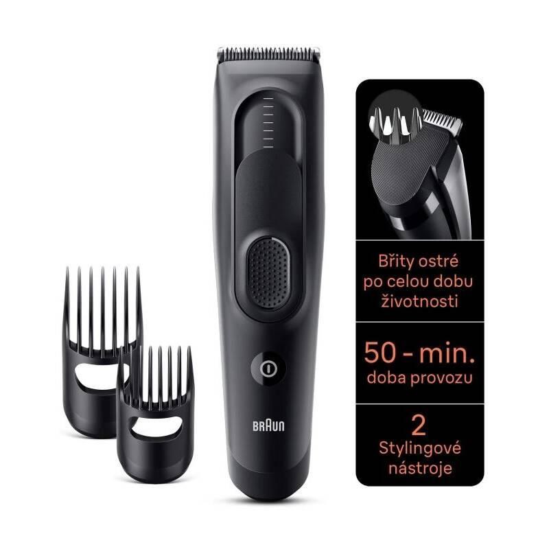 Braun Series 5 HC5330 zastřihovač vlasů, samoostřicí nože, Ni-MH baterie, 2 nástavce, omyvatelný