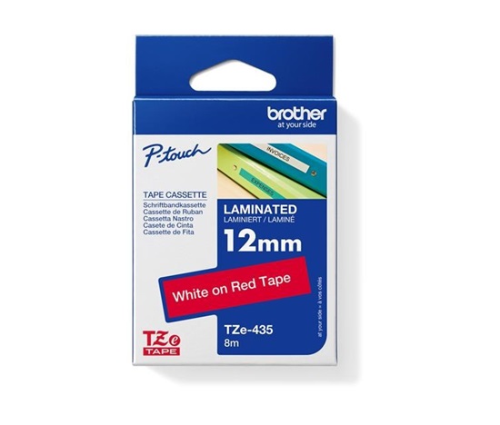 BROTHER TZE435 - 12 mm široká kazeta TZ, laminovaná TZE-435, červeno-biele písmo