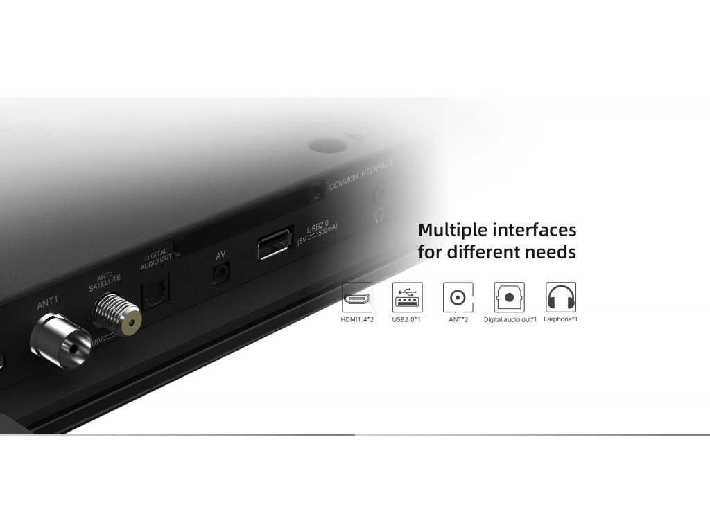 | Vstupy a výstupy | AV vstup mini, CI+, slúchadlový vstup 3.5 mm, digitálny audio výstup, HDMI 1.4, USB 2.0, LAN, anténa RF a LNB |