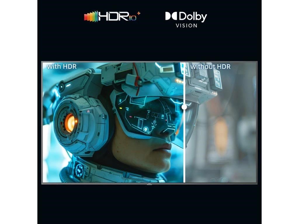 Televízor je vybavený technológiou dekódovania HDR videa pre dosiahnutie vyššej kvality obrazu. Súčasne odhaľuje najsvietivejšie farby aj najtemnejšie tiene. Umožní vidieť viac detailov. Užívajte si doma dokonalý filmový audiovizuálny zážitok a stanete sa súčasťou diania na obrazovke.