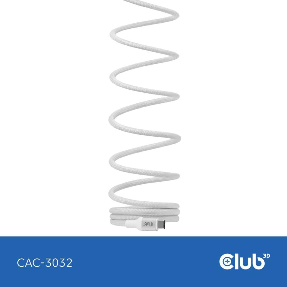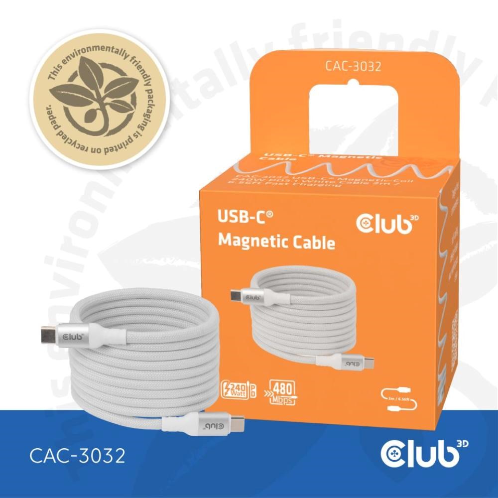 Club3D Kabel magnetický USB-C, 240W PD3.1, 480 Mbps, 2m, bílá