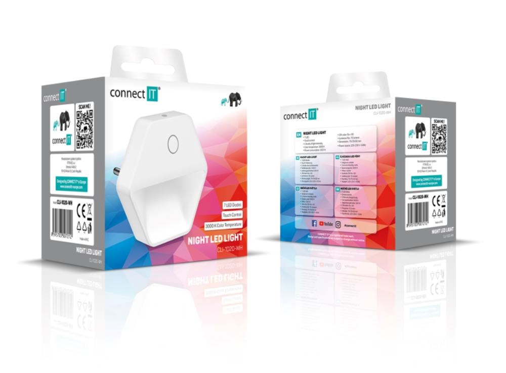 Světlo disponuje touch tlačítkem, které umožňuje zapnout/vypnout světlo a nastavit jas světla ve 3 úrovních. Světlo stačí jednoduše zapojit do libovolné zásuvky a při příkonu 0,60 W se nemusíte bát spotřeby elektrické energie. LED zdroj světla disponuje světelným tokem 30 lumenů.