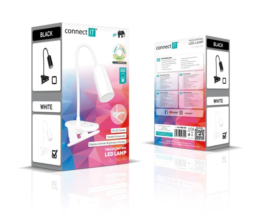 CONNECT IT Stolní LED lampa CLIP 2 s klipem, bílá