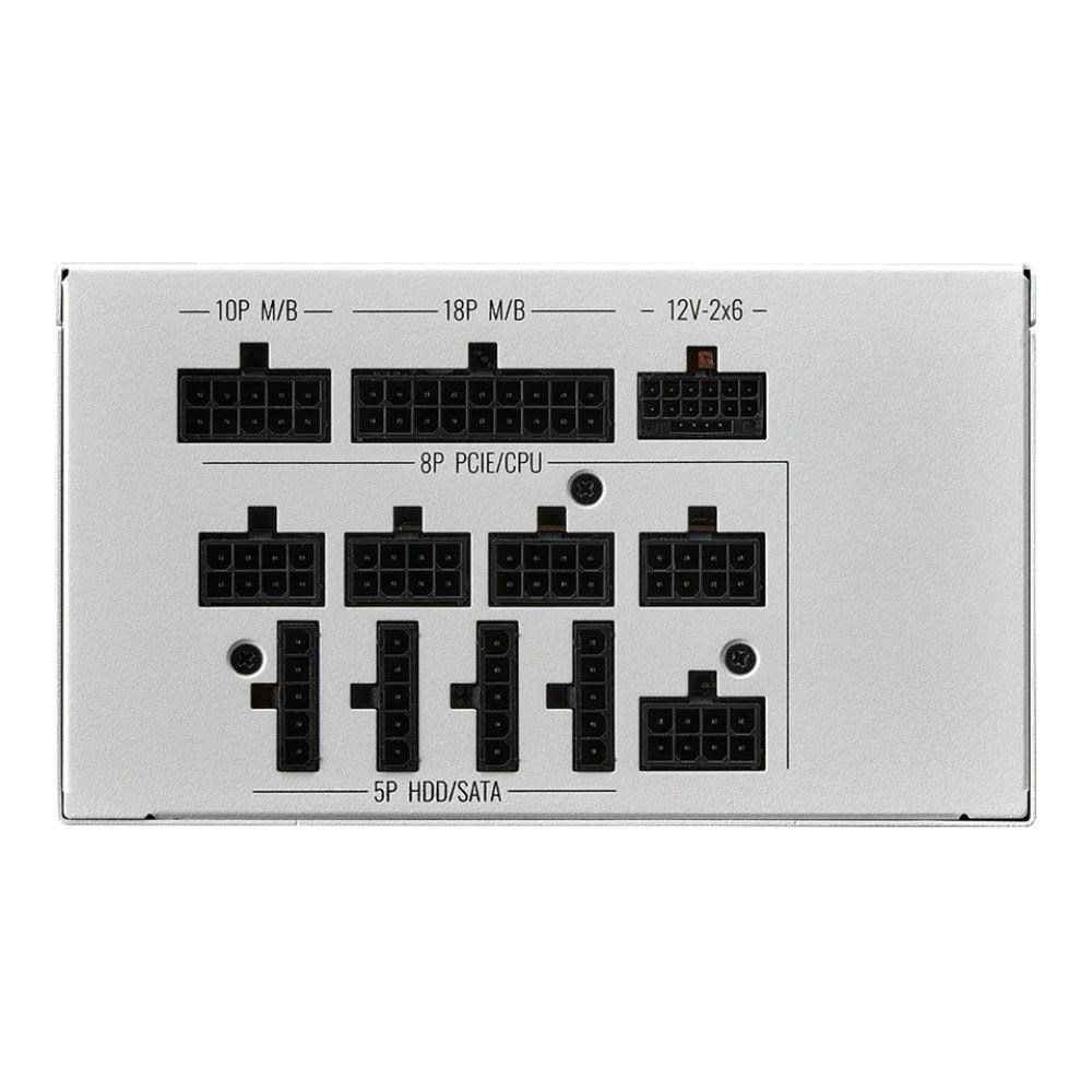 Formát zdroja:ATX; Konektory:8pin CPU 1x, PCIe 6-pin, PCIe 8-pin, PCIe 16-pin Gen5, SATA 15-pin, Molex; Konektory pre základnú dosku:ATX 20-pin, ATX 24-pin, EPS 8-pin; Vlastnosti zdroja:Modulárna kabeláž