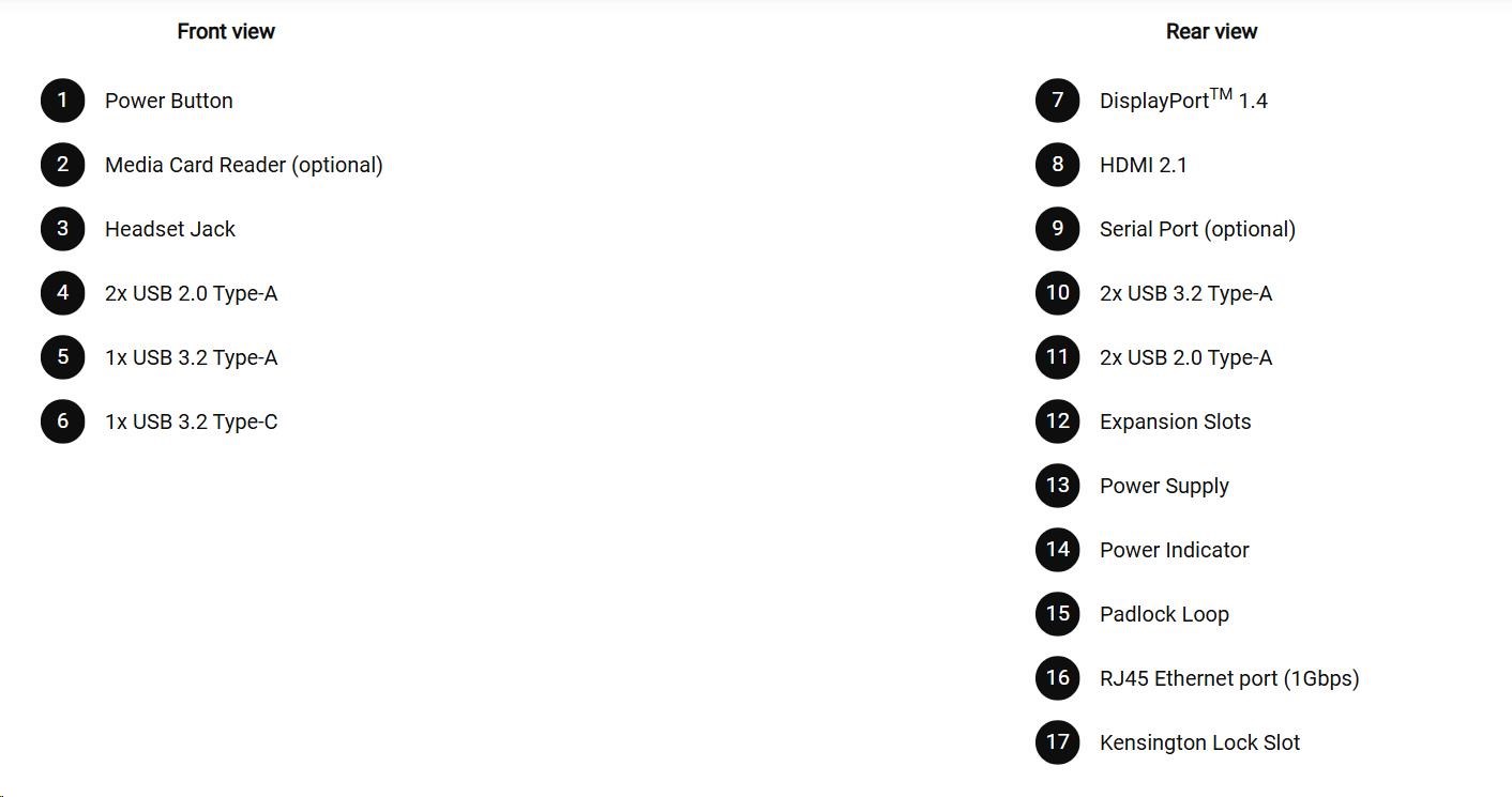 Prevedenie PC:Tower; Operačný systém:Windows 11 Pro; Typ procesora:Intel Core i5; Grafický čip:Intel UHD 730; Rozhranie:LAN (RJ-45), HDMI, USB 2.0, USB 3.2, 3.5mm Jack, DisplayPort; Výbava PC:Klávesnica + myš; Druh optickej mechaniky:Bez optickej mechaniky