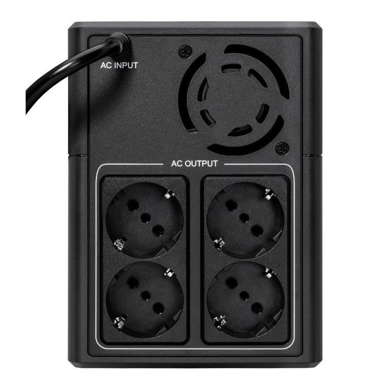 | Špeciálne funkcie | Automatická regulácia napätia (AVR) Úspora miesta vďaka kompaktnému stĺpikovému konštrukcii Port USB kompatibilný s HID pre automatickú integráciu s hlavnými operačnými systémami (Windows/Mac OS/Linux) Obsahuje štyri zásuvky Schuko (DIN) |