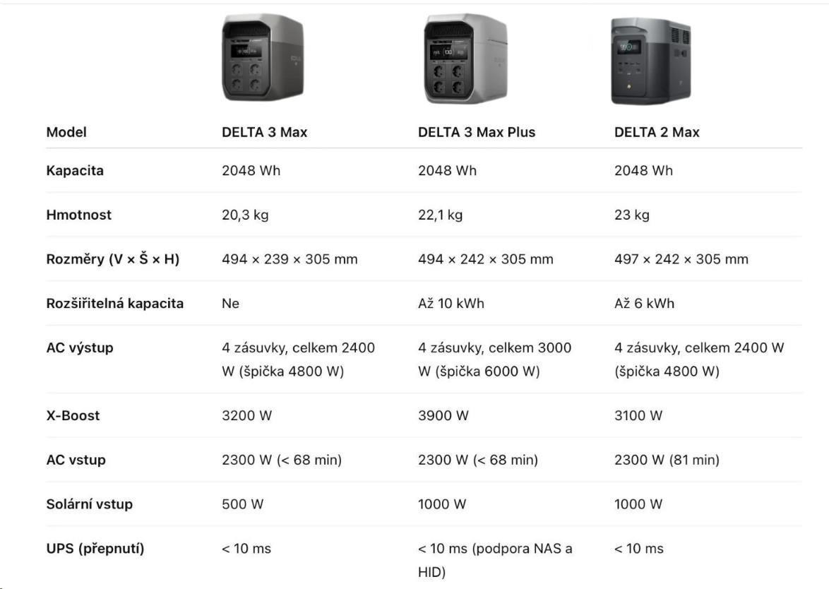 DELTA 2 Max, DELTA 3 Max Plus, DELTA Pro 3, DELTA 3 přídavná baterie |