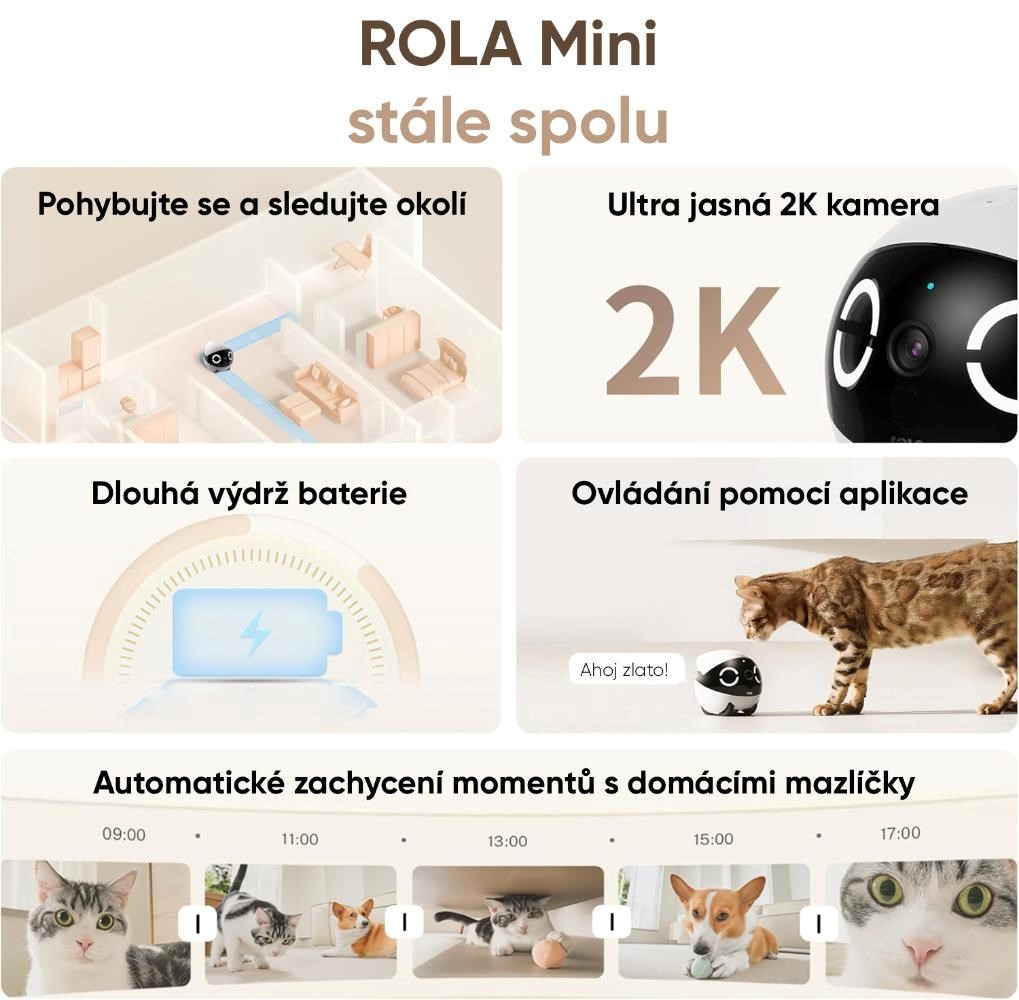 Kamera s rozlíšením 2K a širokým uholom záberu 137° zachytí každý dôležitý moment, zatiaľ čo obousmerný zvuk umožní rozprávať sa so zvieratkom alebo napríklad s deťmi doma. ROLA Mini zvláda aj diaľkové videohovory – stačí jediný dotyk v aplikácii a môžete sa spojiť s kýmkoľvek, kto má robota pripojeného. Vďaka vysoko kapacitnej batérii 5000 mAh funguje robot úplne samostatne, až 25 dní. Jeho odolná konštrukcia a pohyblivosť zaistia, že zvládne aj hravé nárazy alebo nečakané prekážky.