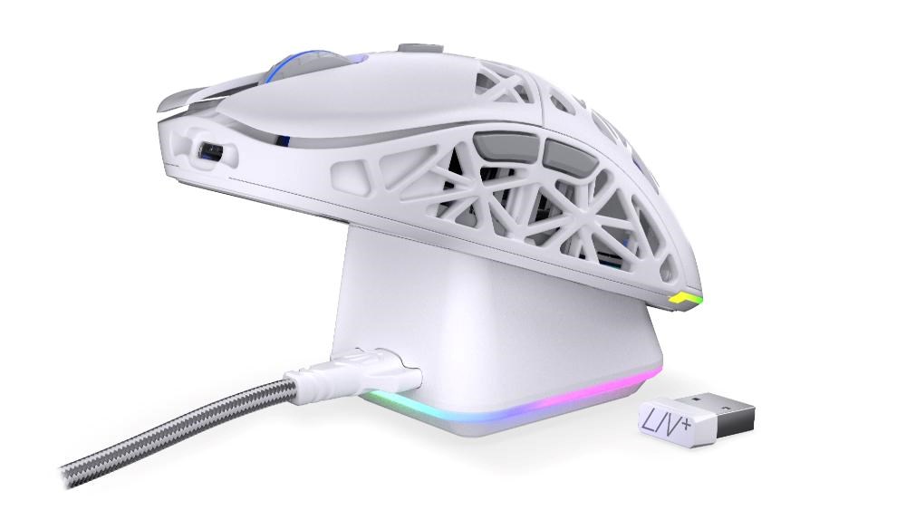 Ultralšia a veľmi presná bezdrôtová herná myš LIV Plus Wireless Onyx White, inšpirovaná bielym onyxom. Každá časť, od ľahkej konštrukcie so snímačom PixArt PAW3395 až po bezdrôtovú dokovaciu stanicu, bola vytvorená tak, aby zvýšila vašu výdrž a efektivitu počas dlhých herných .... Pripojte sa k svojmu počítaču, konzole, telefónu alebo televízoru a jednoducho vyhrajte všetko - bez námahy.