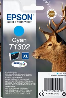 BAZAR - EPSON ink bar Singlepack "Jelen" Cyan T1302 DURABrite Ultra Ink (10,1 ml) - Poškozený obal (Komplet) Kód: 1188396, Part Number: C13T13024012//BAZAR, ID: 1791839, Záruka: 12M Bazár Zobraziť cenu Dostupnosť: Skladom 8 ks Prihlásiť sa Porovnať