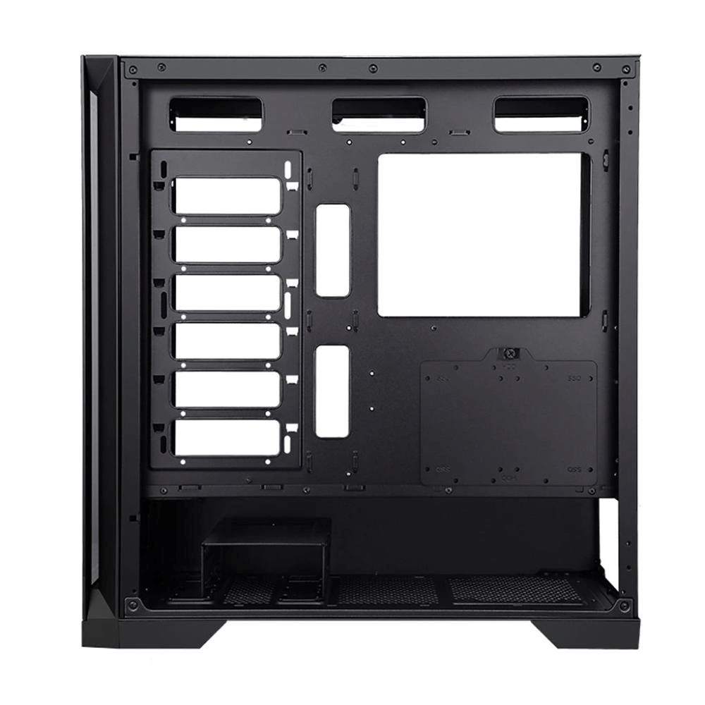Hneď na prvý pohľad vás táto PC skriňa osloví štýlovým priehľadným prevedením. Čelný panel aj bočnice sú vyrobené z temperovaného skla, takže pri pohľade na počítač môžete obdivovať svetelnú show RGB ventilátorov alebo sa na vlastné oči presvedčiť, že hardware šliape ako švajčiarske hodinky. Použité bezpečnostné sklo s hrúbkou 4 mm má navyše aj ďalšiu výhodu – ak by sa náhodou stala nehoda, nezasype vás ostrými trieskami, ale rozpadne sa na neškodné drobné kúsky.