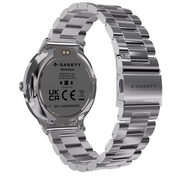 - Sada obsahuje: smartwatch GARETT, náhradní kožený řemínek (černý / hnědý dle varianty), nabíjecí základna USB, QSG návod