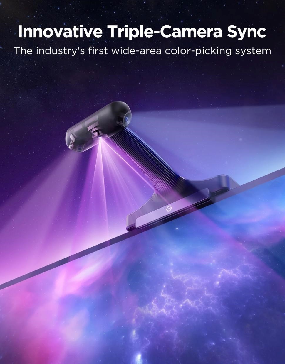 Prvá trojitá HDR kamera na svete, Govee TV Backlight 3 Pro, posúva presnosť zobrazovania na novú úroveň. Kamery monitorujú obraz z viacerých uhlov, čím dosahujú detailnejšie a realistickejšie reprodukcie farieb. Každý kút obrazovky je dokonale prispôsobený okolitému osvetleniu.