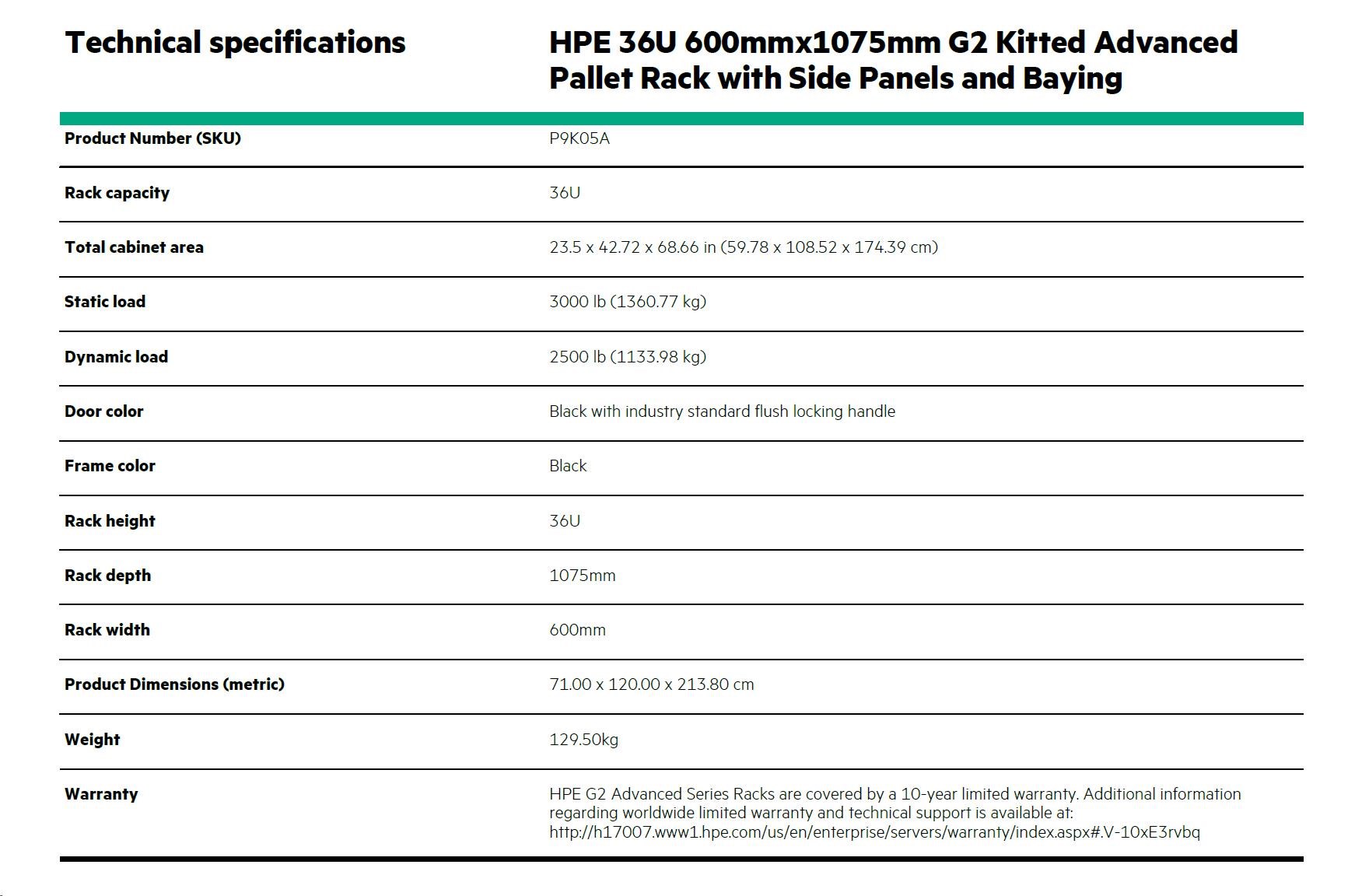 HPE 36U 600mmx1075mm G2 Kitted Advanced Pallet Rack with Side Panels and Baying