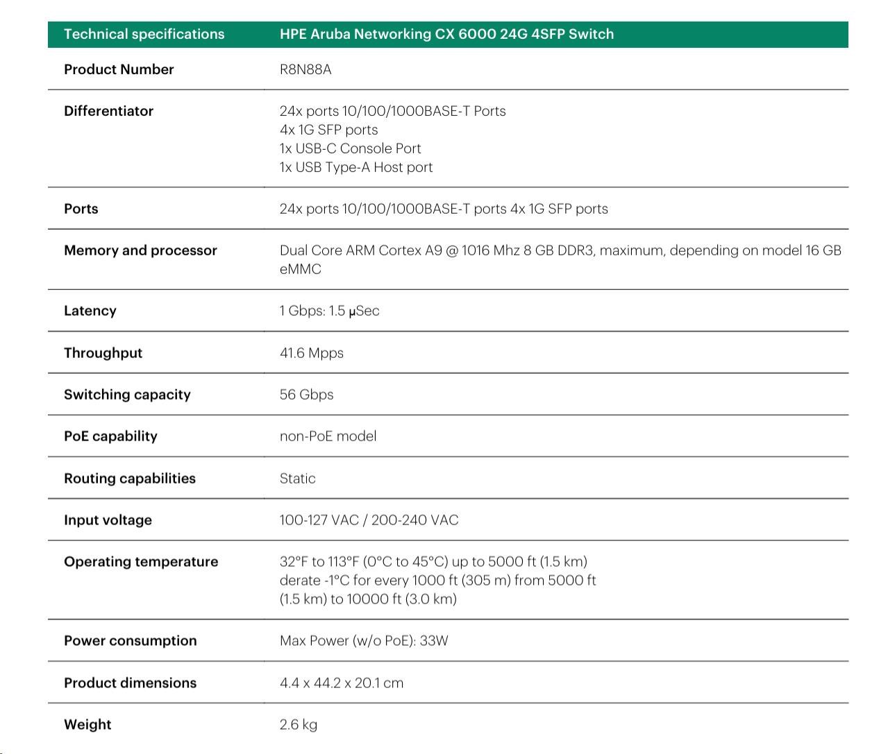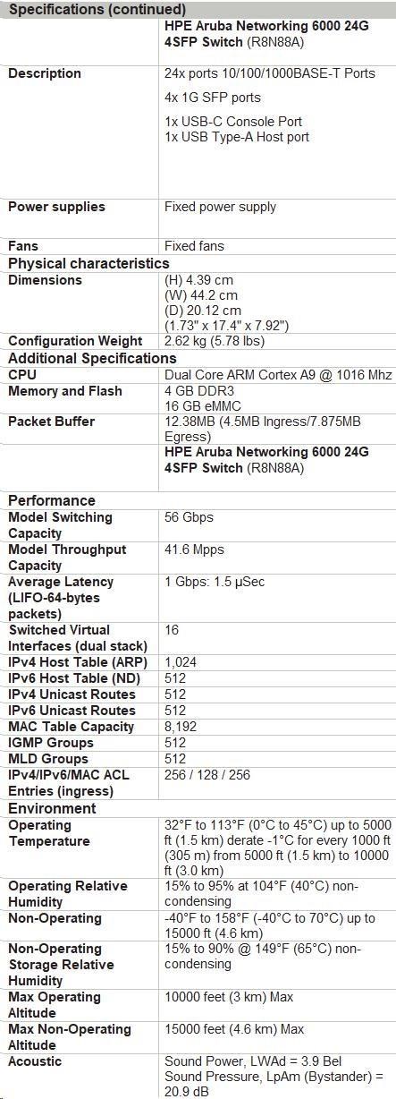 HPE Aruba Networking CX 6000 8p 10M/100M/1G 2p SFP 1G Switch
