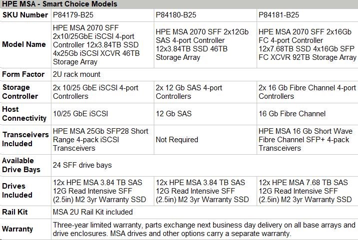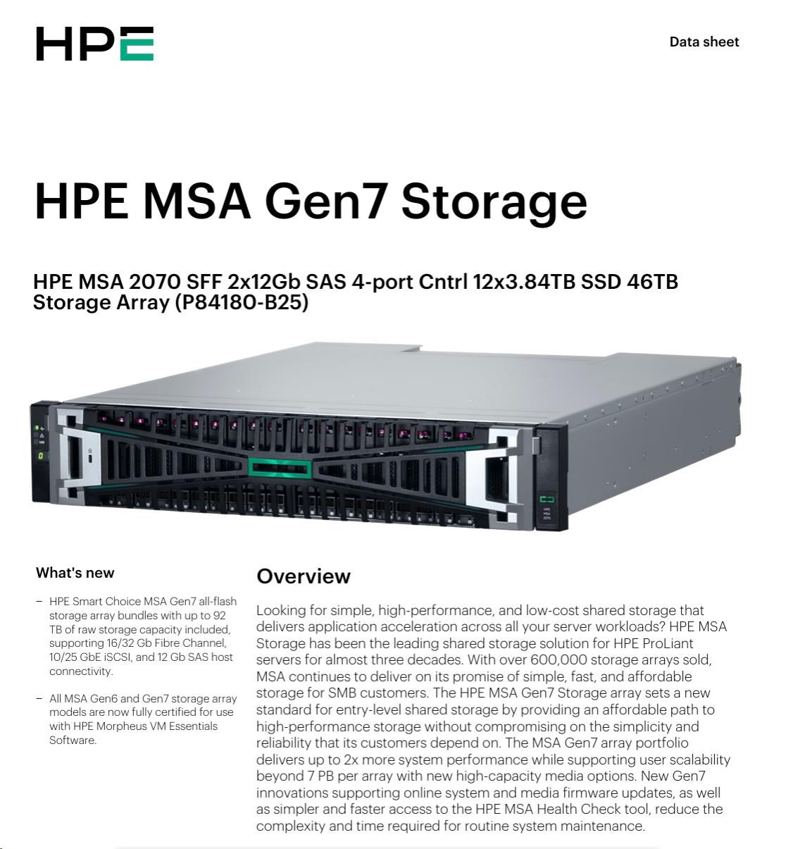HPE MSA 2070 SFF 2x10/25GbE iSCSI 4-port Controller 12x3.84TB SSD 4x25Gb iSCSI XCVR 46TB Storage Array Smart Choice
