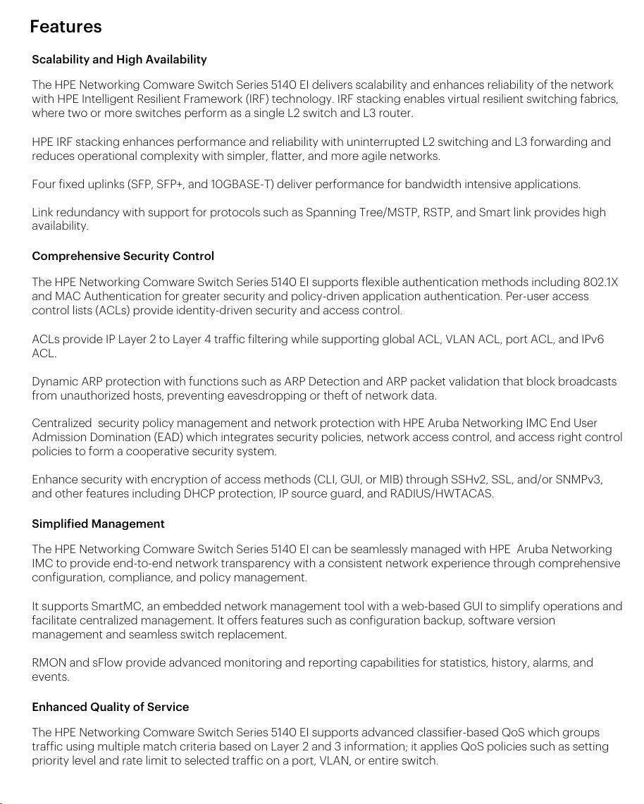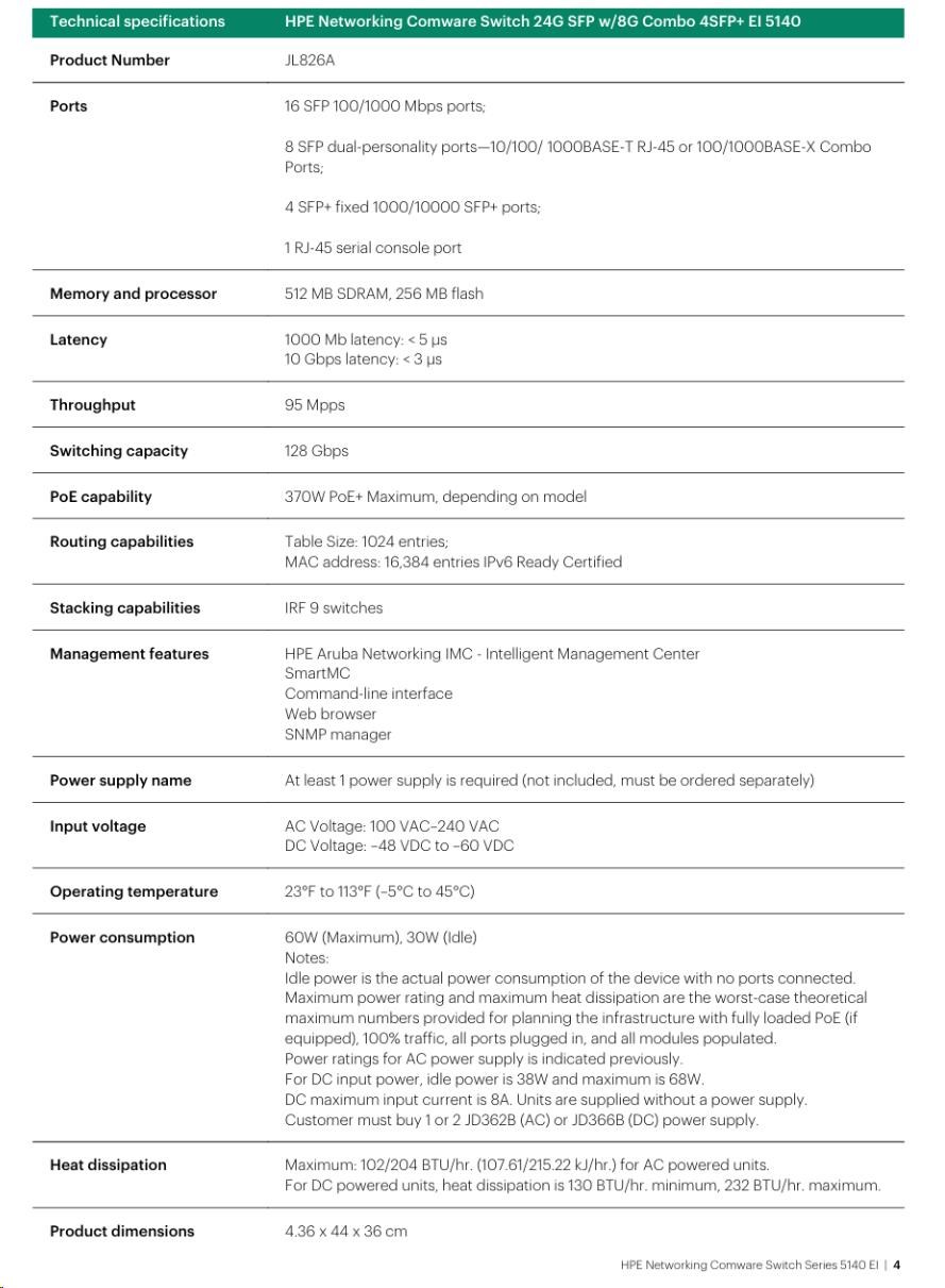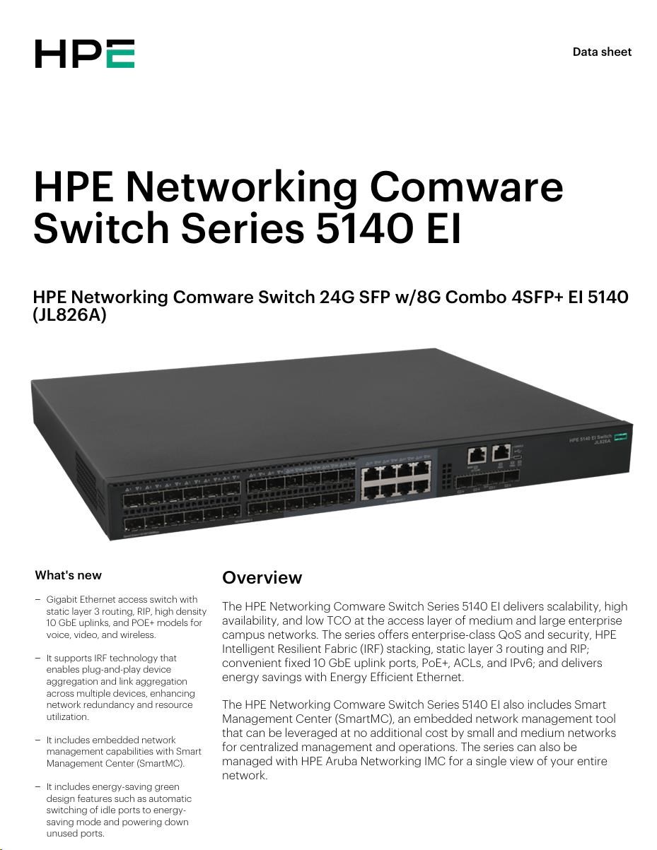 HPE Networking Comware Switch 24G SFP w/8G Combo 4SFP+ EI 5140 JL826AR RENEW|