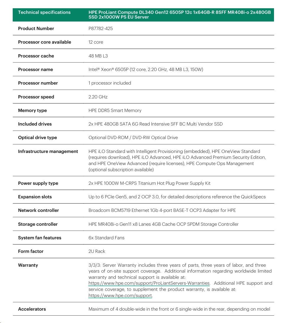 HPE PL DL340g12 6505P (2.2/12C) 4x32G (P69727) MR408i-o 8SFF 2x1000W NBD333 Smart Choice