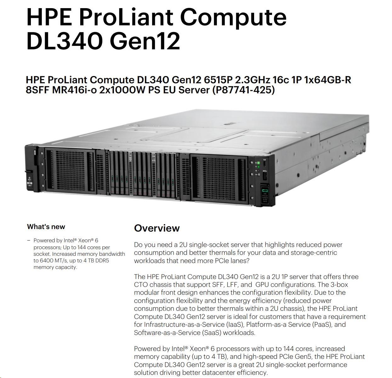 HPE PL DL340 Gen12 6515P (2.4/16C) 1x64G (P69728) NS204(2x480) MR416i-o 8SFF 2x1000W 10GbE NBD333 Smart Choice