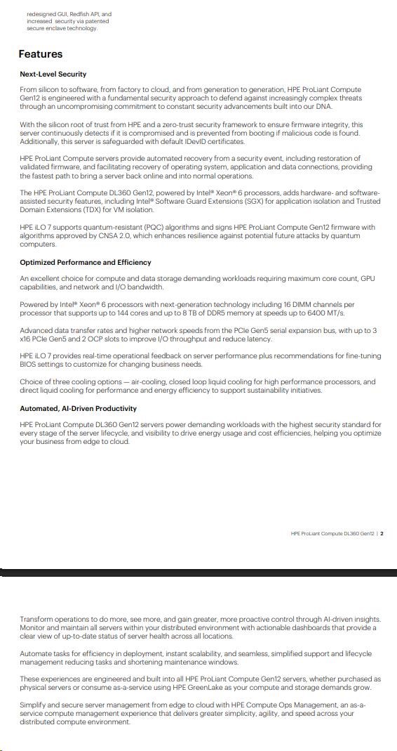 - HPE iLO 7 with enhanced security and Redfish API support