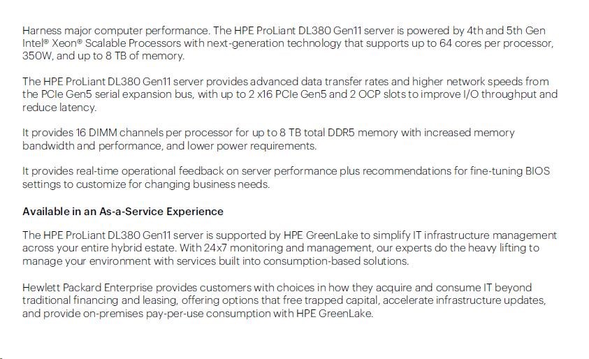 Model Name HPE PL DL380g11 4510 (2.4/12C/30M) 2x32G 2x8TB 2x1000W MR416i-p 12LFF 4x1Gb NBD333 2U
