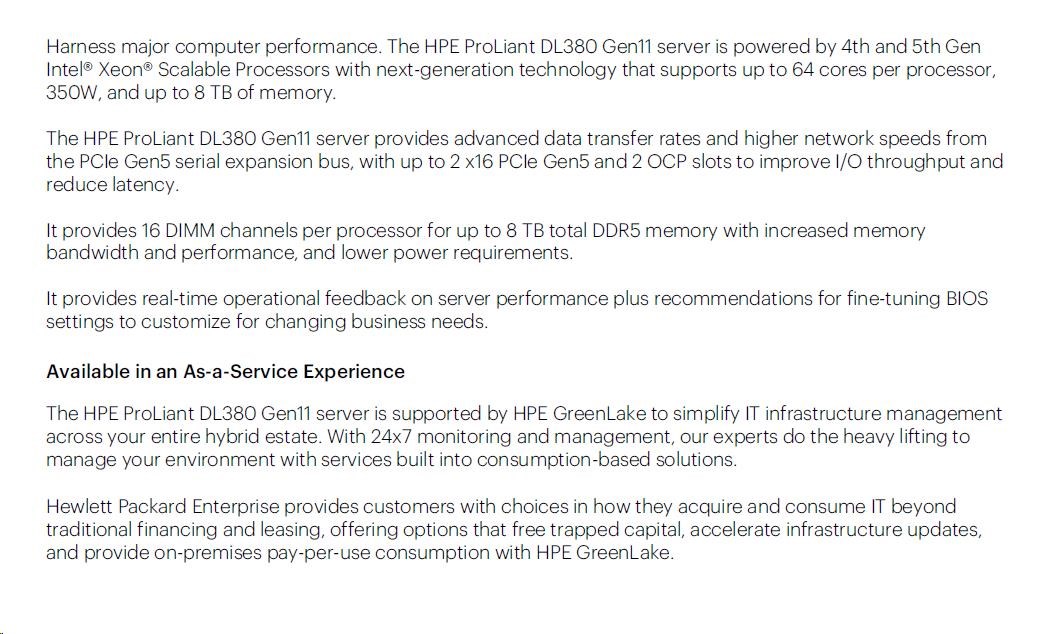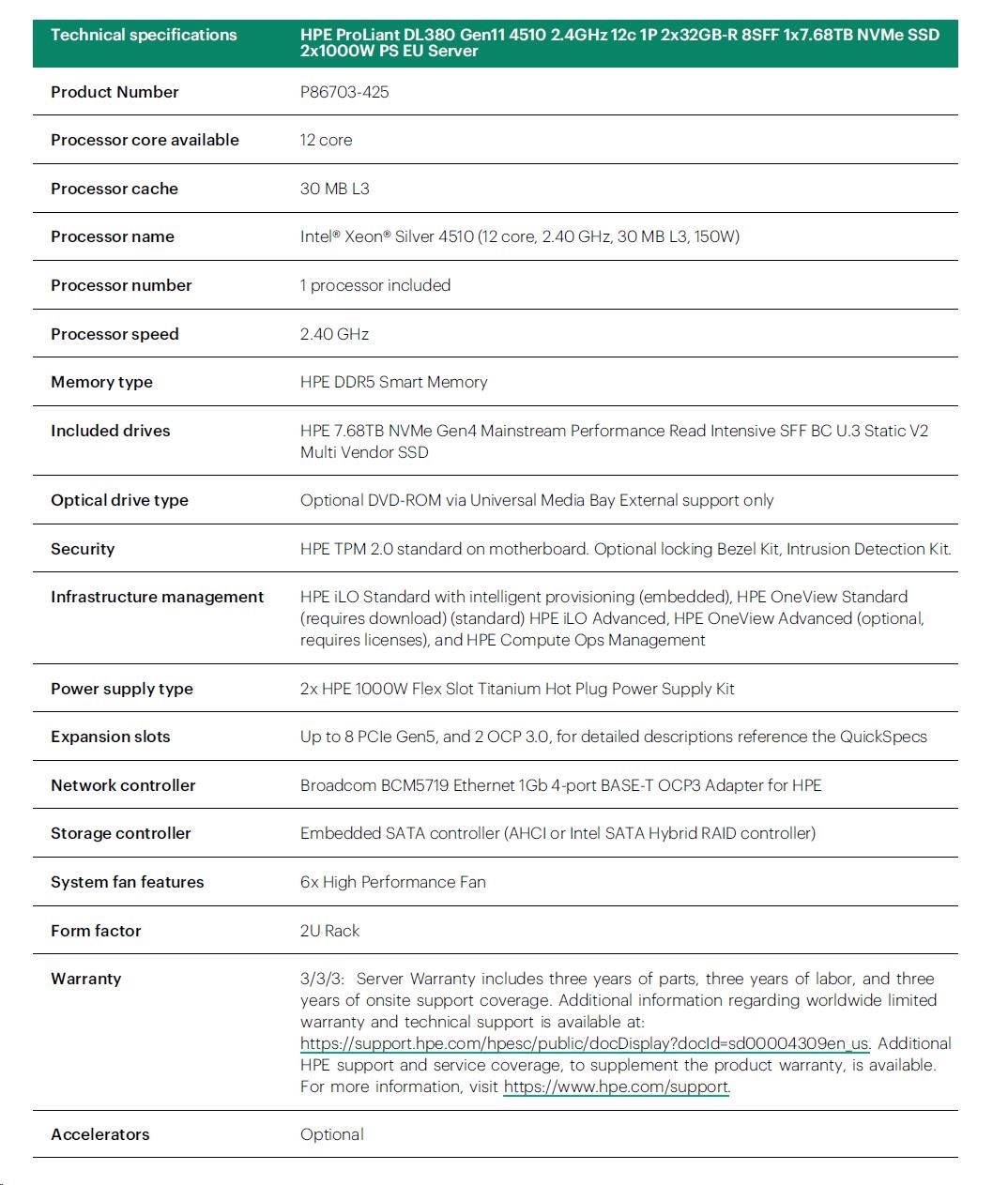 HPE PL DL380g11 4510 (2.4G/12C) 2x32G (p64706) 1x7.68TB NVMe 2x1000W 8SFF 4p1G Smart Choice