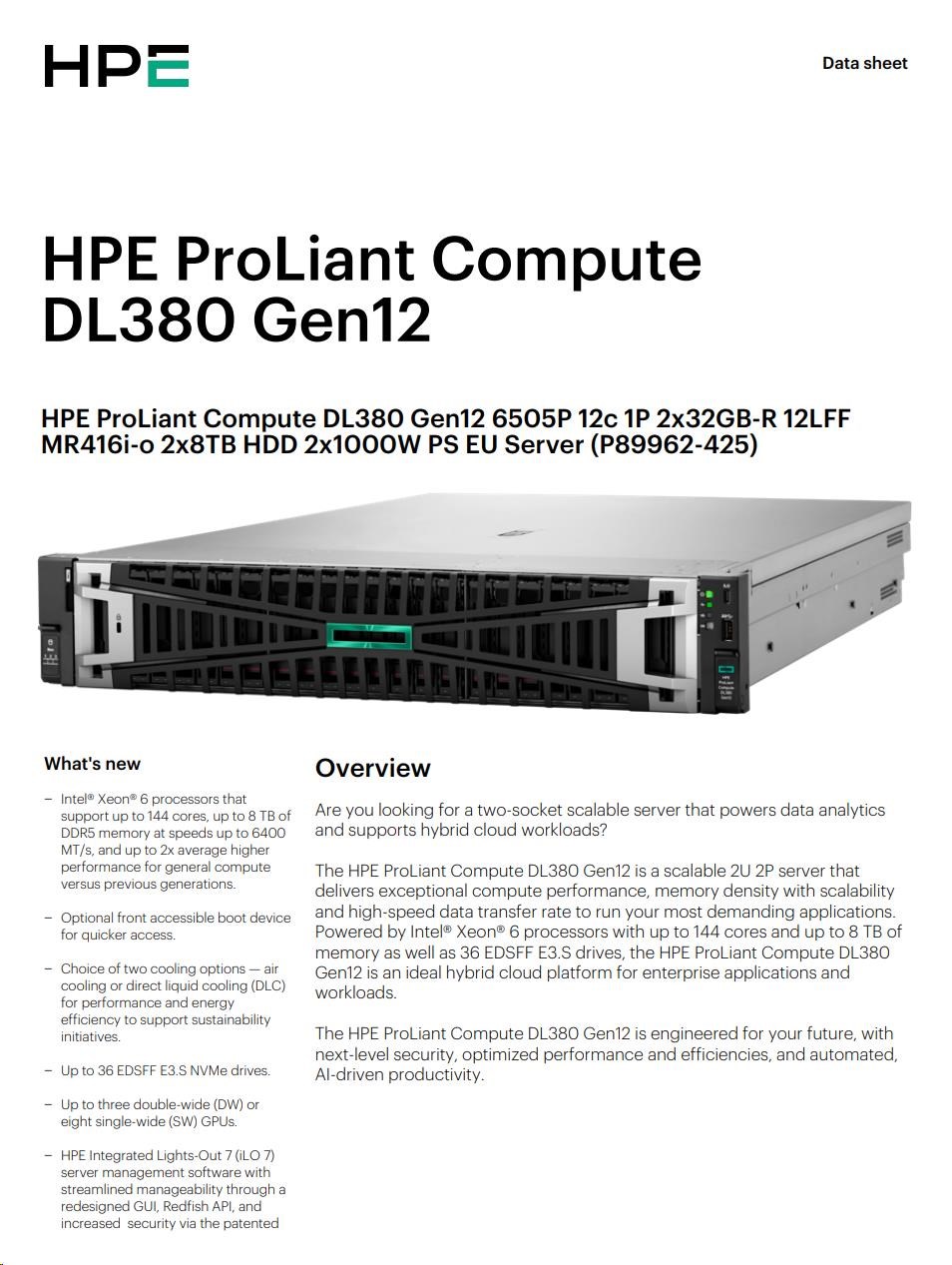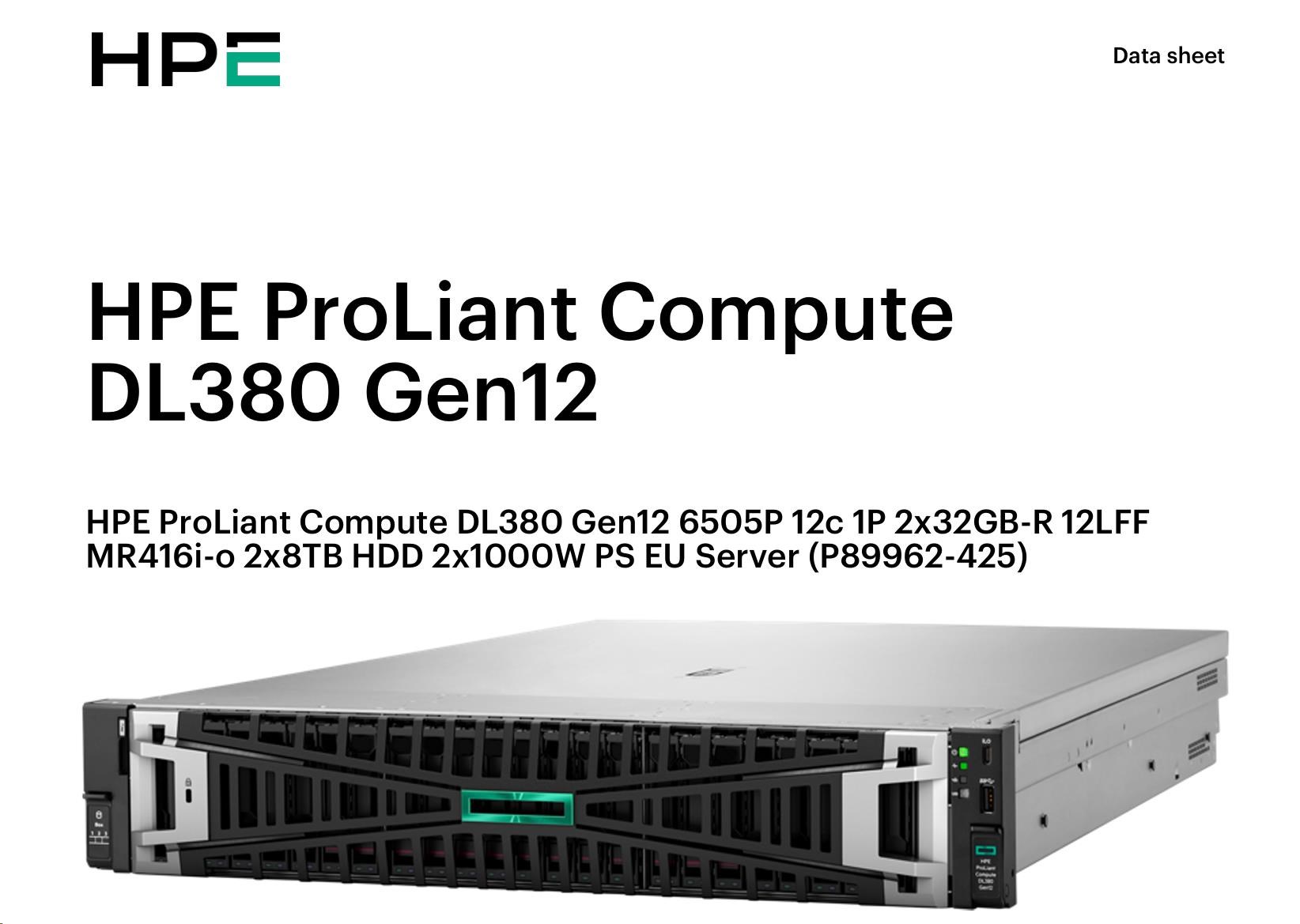 HPE PL DL380g12 6505P (2.2/12C) 2x32G (P69727) 12LFF 2x8TB MR416i-o 2x1000W 10GbE NBD333 Smart Choice