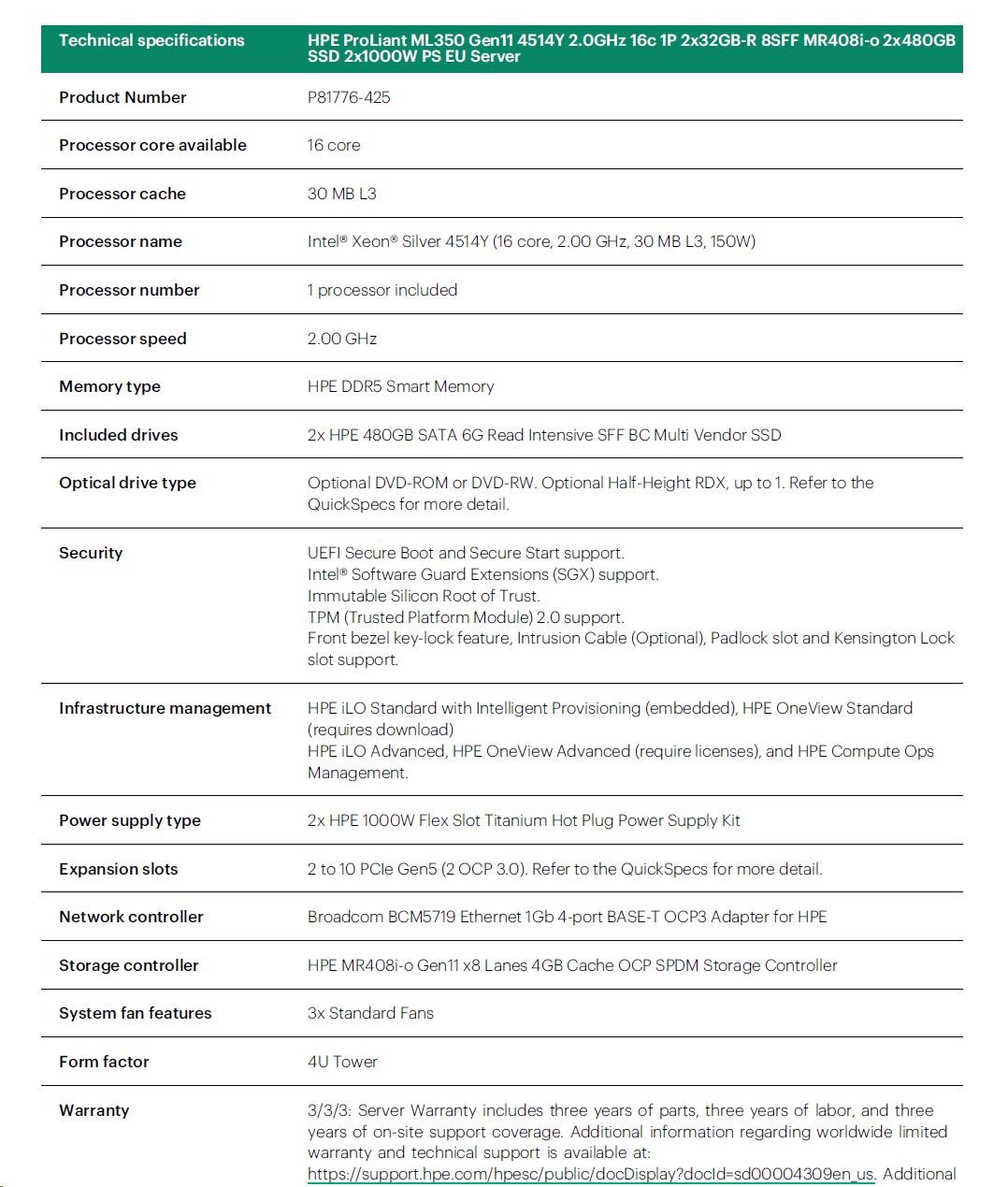 HPE ProLiant ML350 Gen11 - Smart Choice Models |