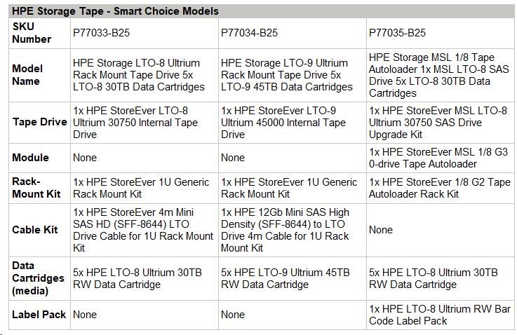 HPE StoreEver Rack-mount Kit is ideal for customers who have limited space in their rack as it allows for a smaller footprint leaving valuable space for other key components in the data center. The 1U HPE StoreEver Rack-mount Kit allows users to mix a variety of technologies, including LTO Ultrium, as well as RDX removable disk technology by selecting the appropriate cabling. The enclosures support standard internal LTO tape drives and HPE RDX Removable Disk Backup System, allowing for drive upgrades when you need additional capacity or want to migrate to a new generation of LTO tape drives or RDX removable disk technology.Data sheet Page 2 Provides up to 90 TB of storage capacity (assuming 2.5:1 compression) using two LTO-9 Ultrium 45000 drives or up to 8 TB of storage capacity using two RDX 4 TB removable hard disk drives. Data transfer rates up to 300 MB/s using LTO-7, LTO-8, or LTO-9 Ultrium drives or up to 30 MB/s using two RDX removable hard disk drives.