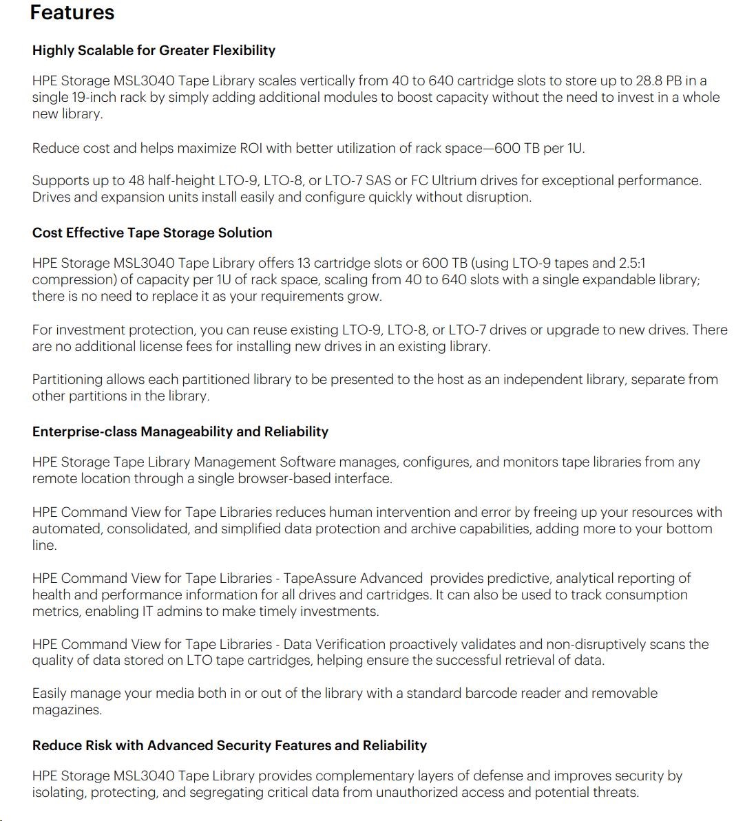 HPE Storage MSL3040 Tape Library 1x MSL LTO-9 Fibre Channel 20x LTO-9 45TB Data Cartridges