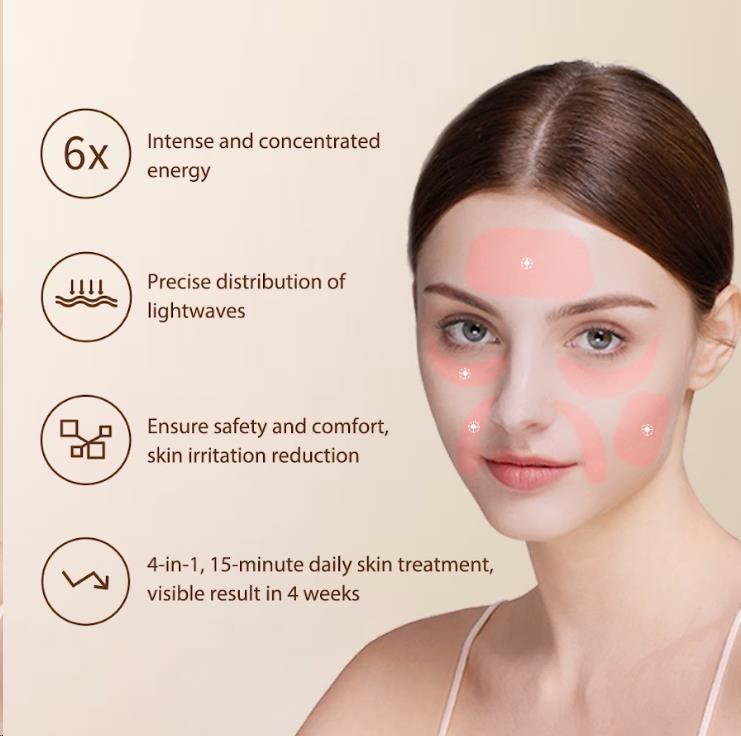 - Štyri špecifické vlnové dĺžky pre cielené riešenie problémov v rôznych vrstvách pleti.