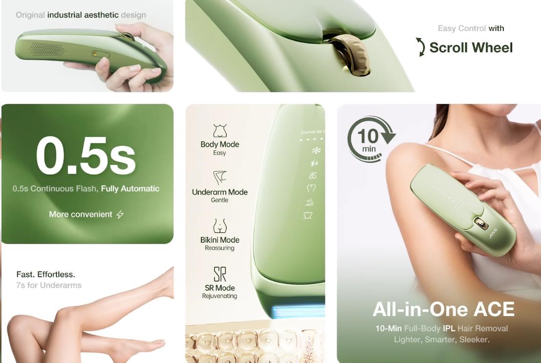 - Cielená starostlivosť pre celé telo: Niekoľko režimov a úrovní intenzity pre bezpečné ošetrenie nôh, rúk, podpazušia, oblasti bikín aj tváre.