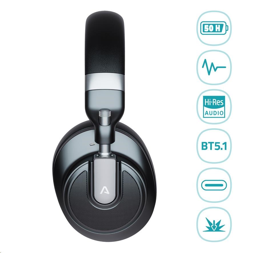 Na první pohled tě zaujmou jedinečným titanovým designem, na první dotek se ti zalíbí luxusním zpracováním a na první poslech tě přesvědčí, že sis vybral správně. Sluchátka vydrží na jedno nabití až 50 hodin (25 hodin se zapnutým ANC), takže jsou ready na týden v officu i let kolem zeměkoule. Pokud potřebuješ volný ruce, při hovorech ti pomůže zabudovaný mikrofon. A kdyby ses chtěl vrátit ke starý dobrý klasice, klidně do nich můžeš i zapojit 3,5 mm jacka.